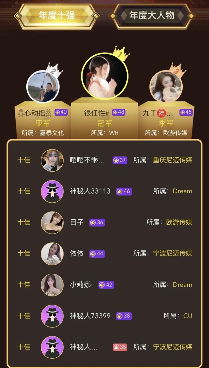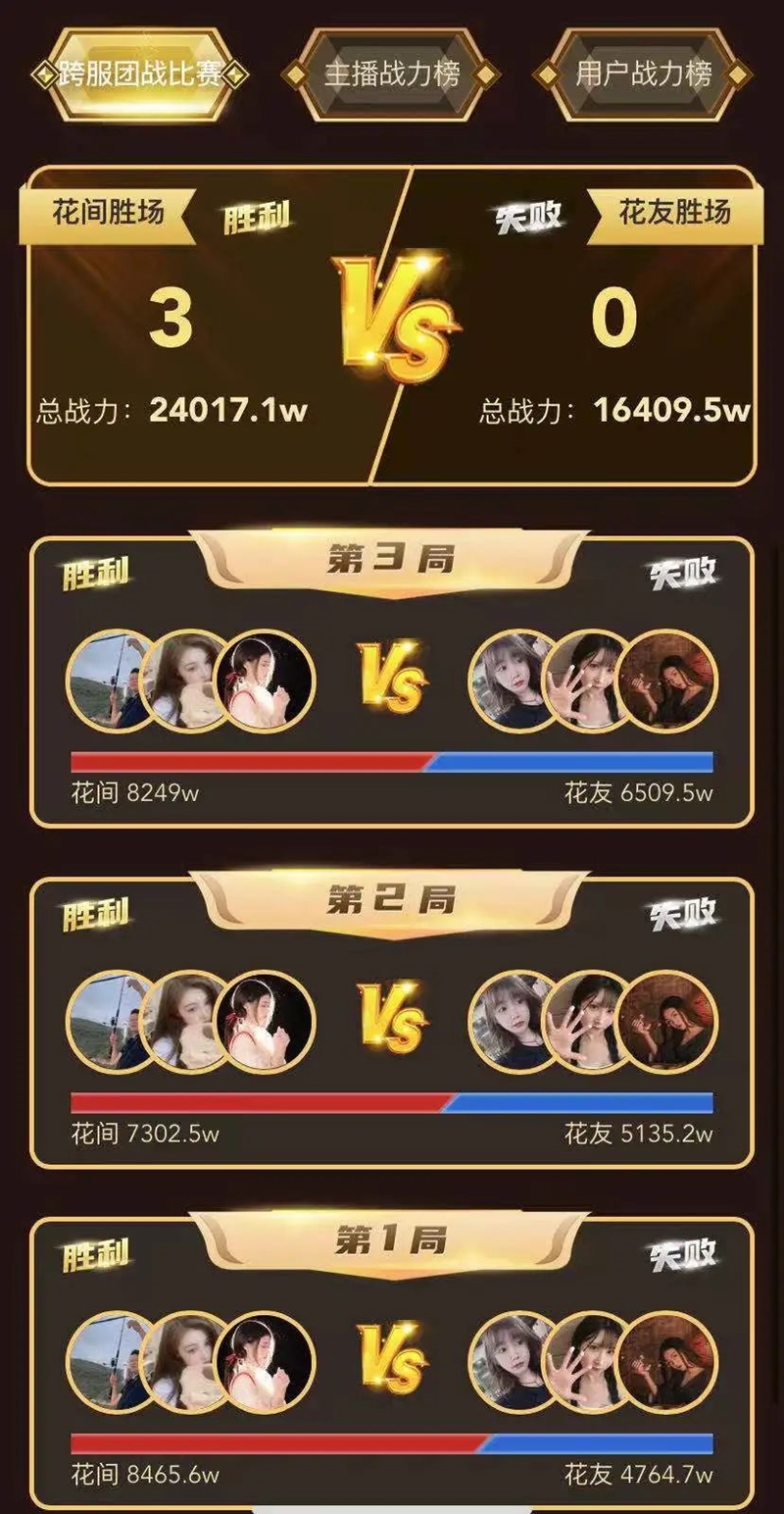在花间年度top3与花友年度top3进行的跨服大决战中,